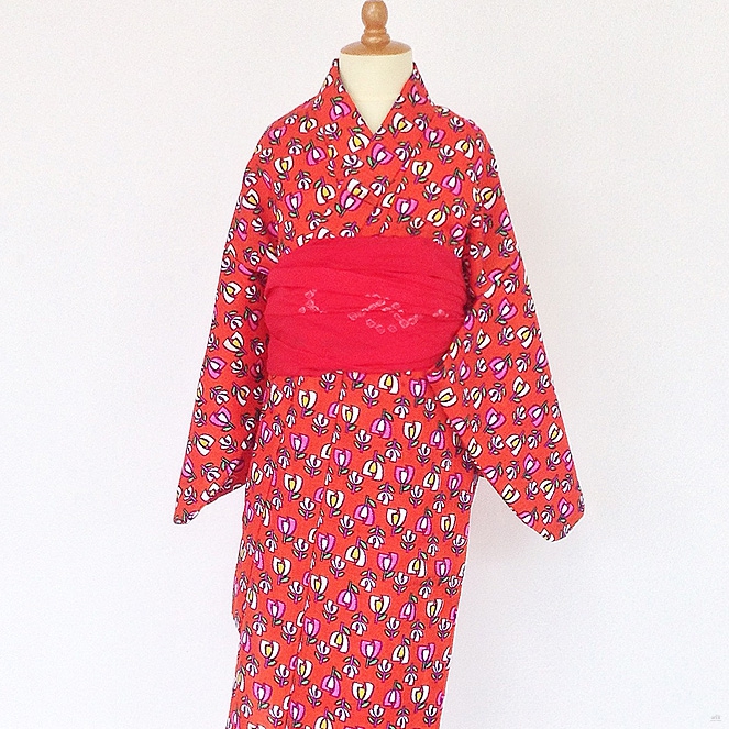 Kimono berbahan rayon untuk anak perempuan dengan warna dasar merah