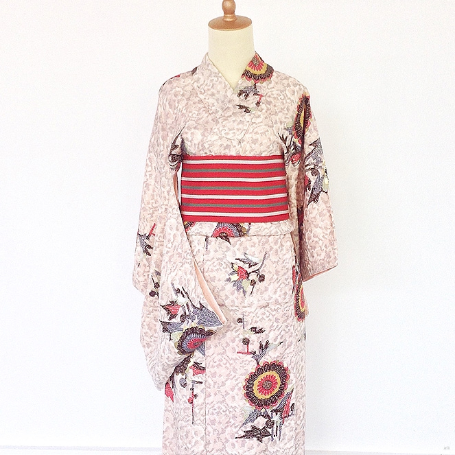 Kimono berbahan sutera dengan warna dasar pastel dan motif bunga matahari